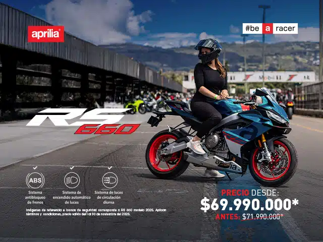 En Aprilia Colombia, nos enorgullece ofrecer una amplia gama de motos de alta calidad que combinan tecnología avanzada, diseño italiano y una experiencia de conducción emocionante. Desde la moto Aprilia RS 660 hasta la Tuono V4, nuestras motos son ideales para aquellos que buscan lo mejor en términos de rendimiento, estilo y calidad.